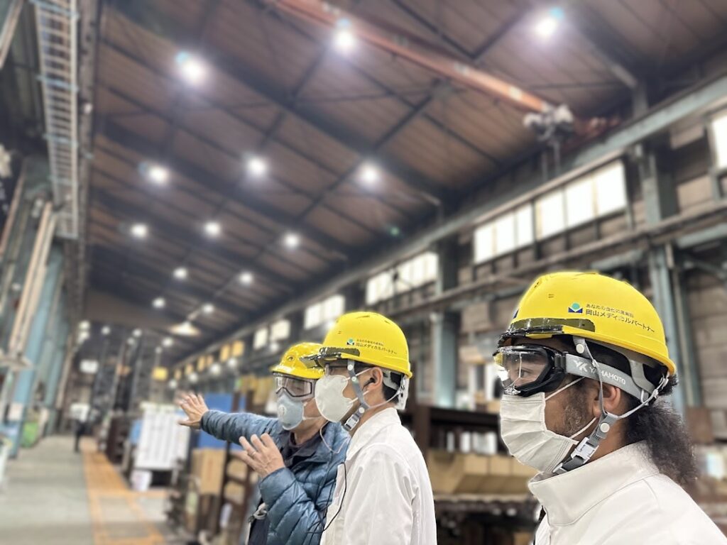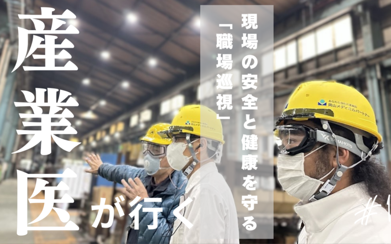 岡山メディカルパートナーでは、契約先企業の安全と健康を守るため、医師が工場やオフィスを訪問し、現場に潜むリスクを“その場”で見つけ出し、
