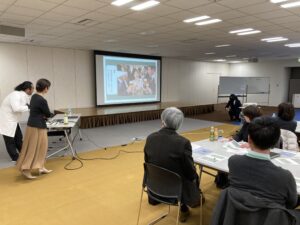寸劇で問題提起した後、清水から「職場に潜む不健康」をテーマに講演を行いました。